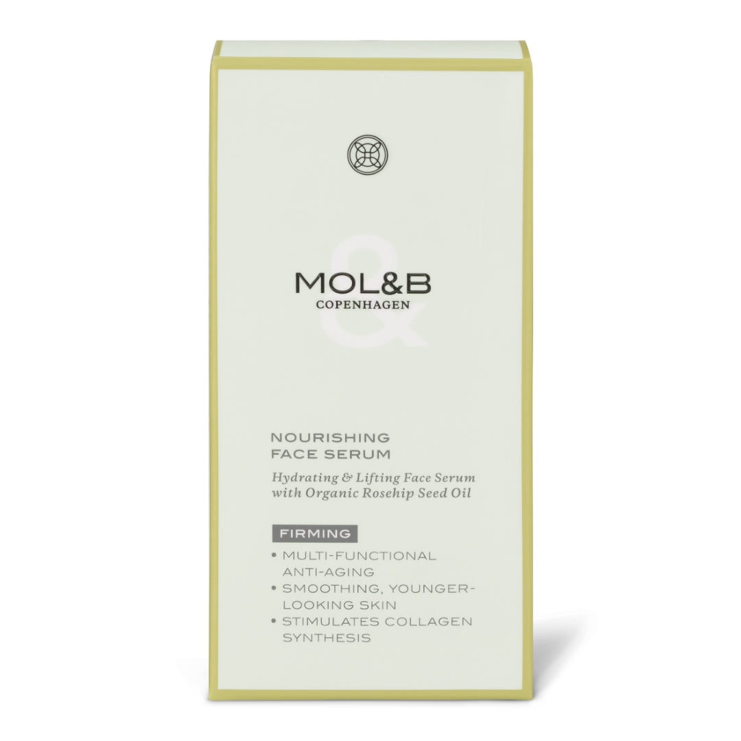 MOL&B Nourishing Face Serum trænger let ind i huden; huden efterlades velfugtet, mere jævn og glat med en sund og ungdommelig udstråling.